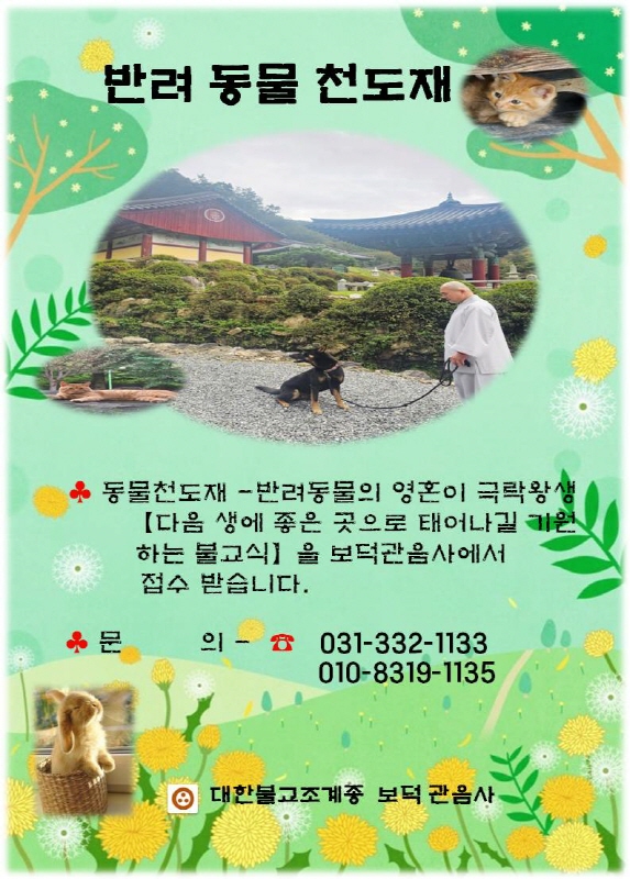 반려 동물 천도재 접수 받습니다.